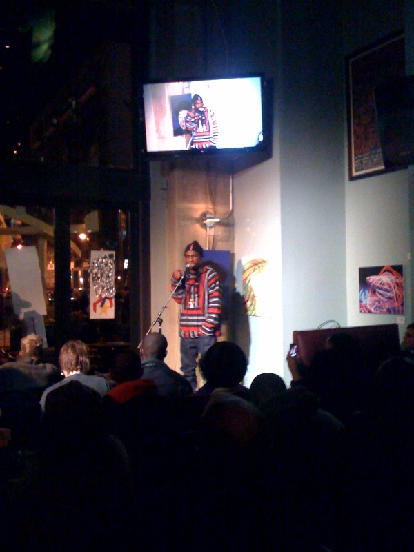 this past week has been a major one for me. i’ve had no shortage of gigs and events, shows and adventures to keep me busy. monday was pretty normal, hosting the open mic at bloombars. tuesday was big because it was my first time hosting the beltway poetry slam. my friend dj niteshade held down the wheels of steel and i kept the competition moving. it was a great night at the fridge. then on wednesday i took off work because i had tickets to see the taping of the daily show here in dc.