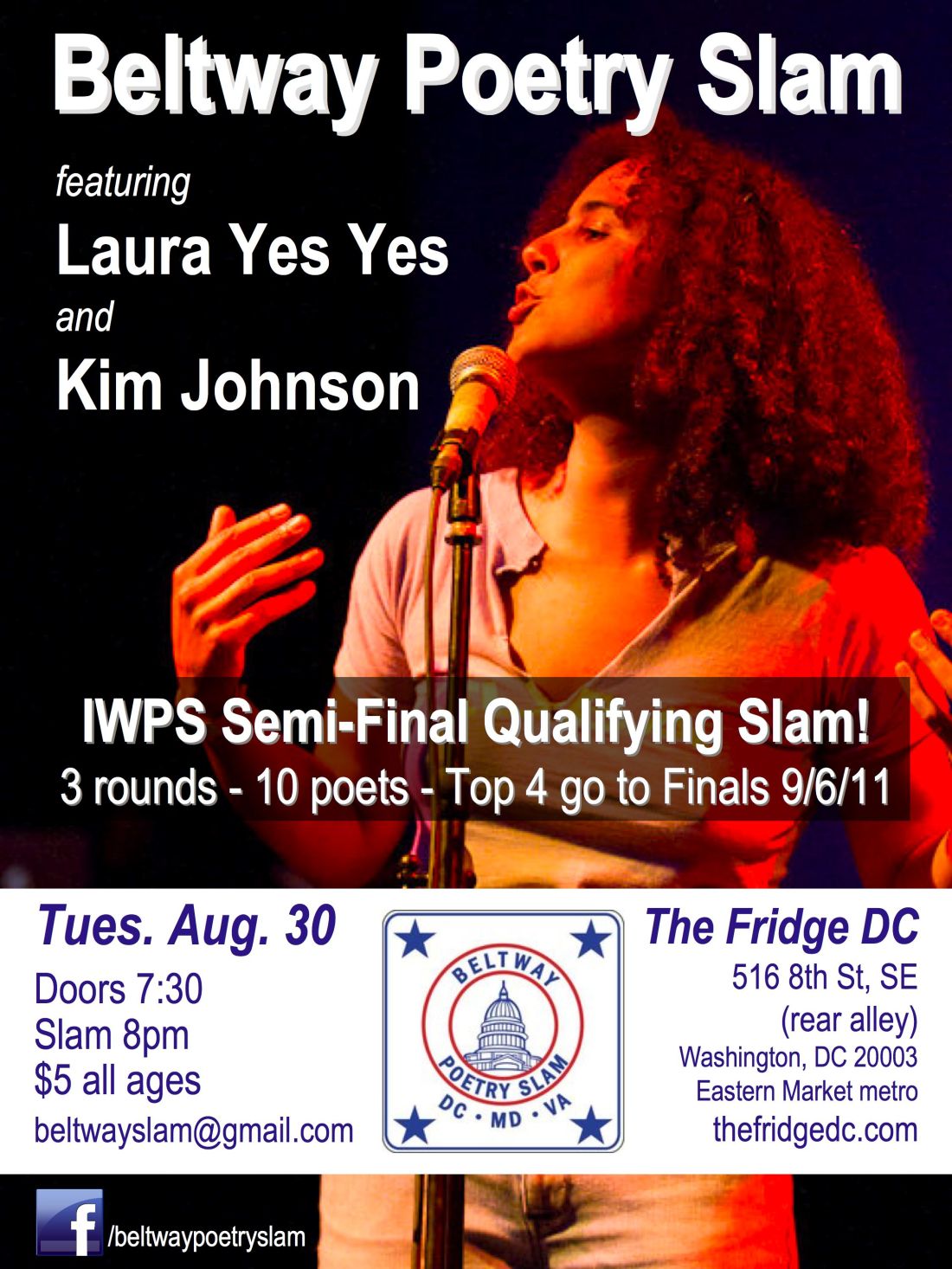 chillin in The Fridge with iWPS qualifying poets JBT shows August 23, 2011August 23, 2011 join me at The Fridge, Tuesday August 30, 2011 for the next Beltway Poetry Slam download flier here. Share this:Share Click to print (Opens in new window) Print Click to email a link to a friend (Opens in new window) Email Click to share on Facebook (Opens in new window) Facebook Click to share on X (Opens in new window) X Click to share on WhatsApp (Opens in new window) WhatsApp Click to share on Tumblr (Opens in new window) Tumblr Related Published August 23, 2011August 23, 2011